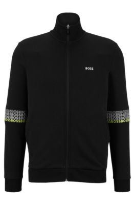 BOSS Cotton blend zip up sweatshirt with multi colored logos