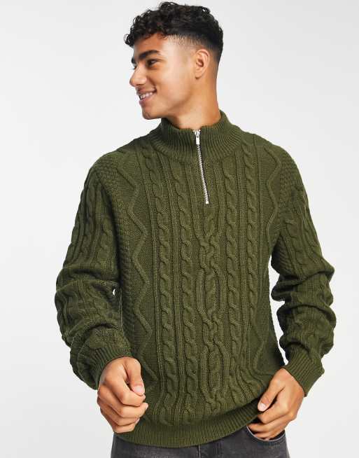 ASOS DESIGN cable knit half zip sweater in khaki ASOS