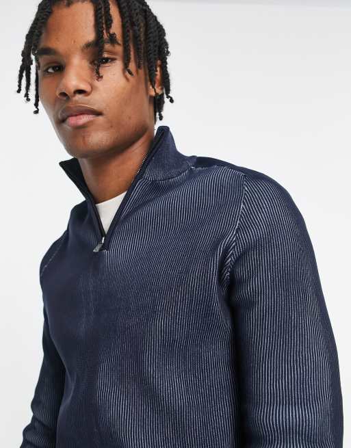 River Island half zip funnel sweater in navy ASOS