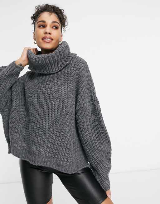 Chunky knit roll clearance neck jumper, Bershka Chunky Ribbed Knit Roll Neck Sweater in Red Lyst clearance