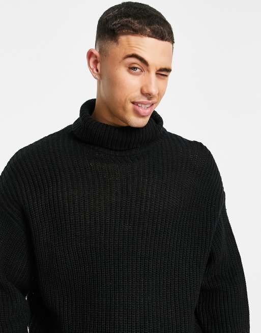 Threadbare oversized heavy roll neck sweater in black ASOS