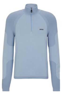 hugo boss piraq logo quarter zip golf pullover medium blue