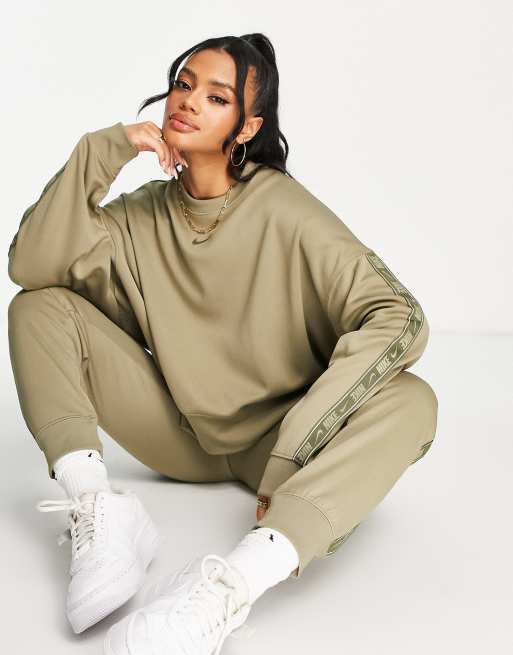 Nike swoosh tape cropped sweatshirt in matte olive ASOS