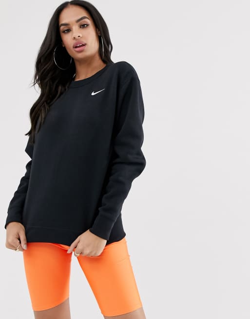 Nike mini swoosh oversized crew sweatshirt in black and sail