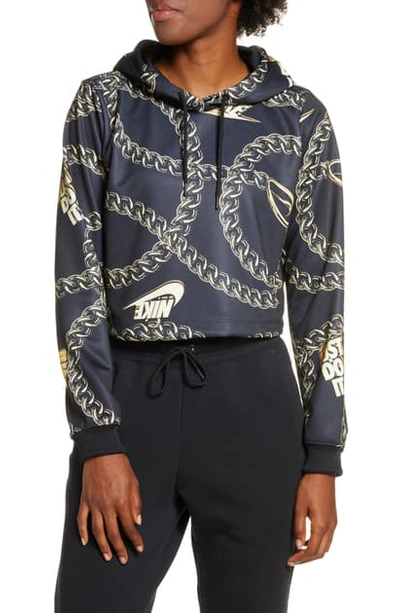 Sportswear Icon Clash Chain Print Crop Hoodie In Black