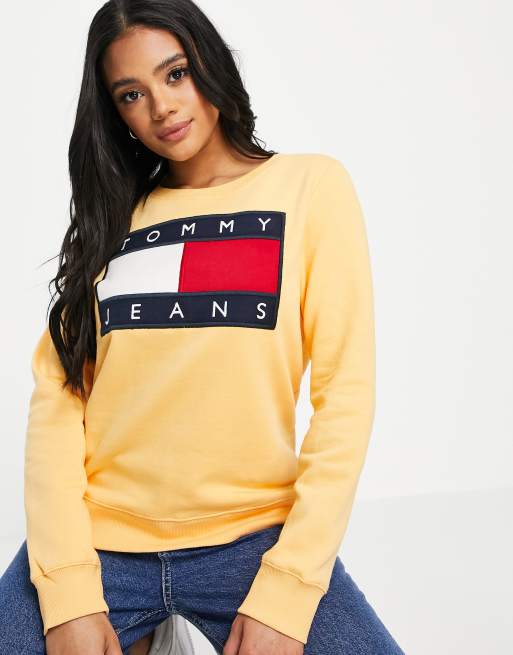 Tommy Jeans flag logo crew neck sweatshirt in orange ASOS