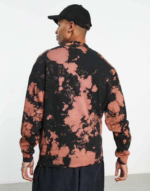 ASOS DESIGN oversized sweatshirt in black and burnt orange tie dye
