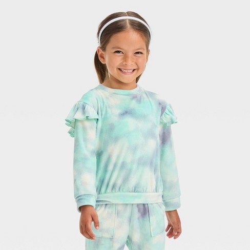 Target blue tie clearance dye sweatshirt, Toddler Girls Tie Dye Micro Fleece Sweatshirt Cat Jack Blue 5T clearance
