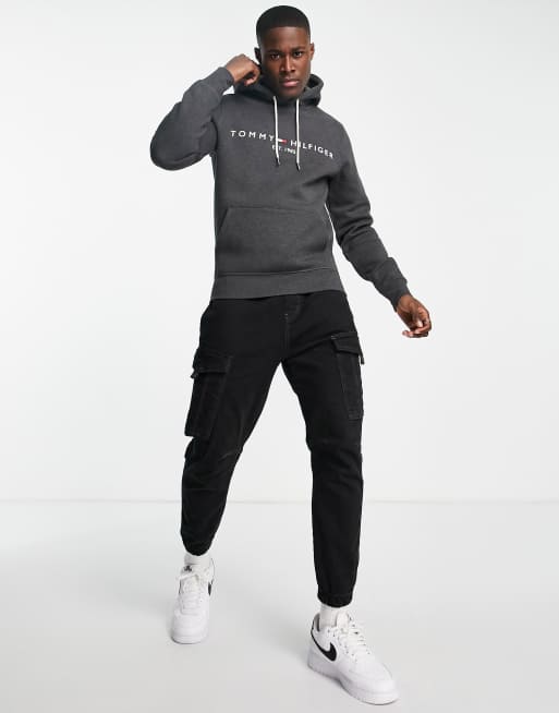 Tommy Hilfiger classic logo hoodie in dark gray ASOS