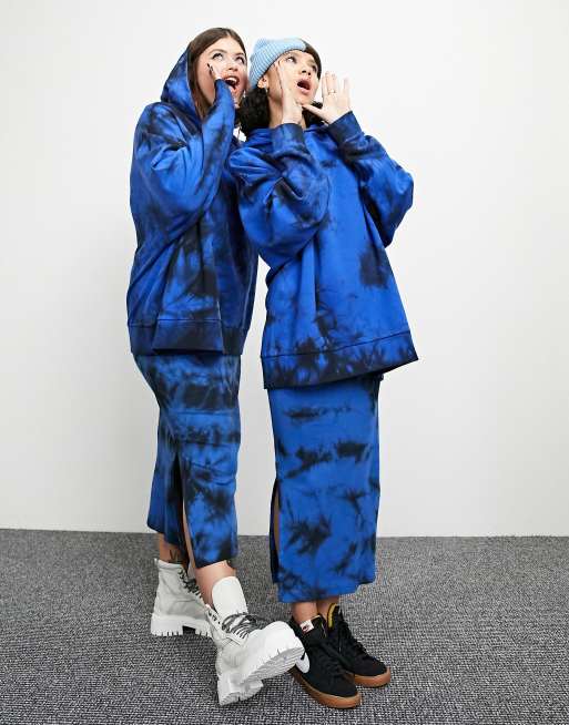 COLLUSION tie dye oversized hoodie with brand print in blue