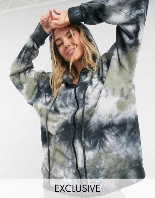 Tie dye longline clearance hoodie, Grey Tie Dye Longline Hoodie clearance