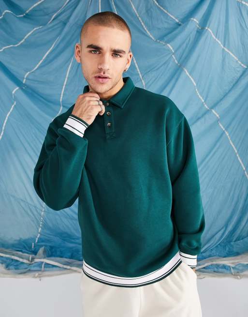 ASOS DESIGN oversized rugby polo sweatshirt in green with contrast collar