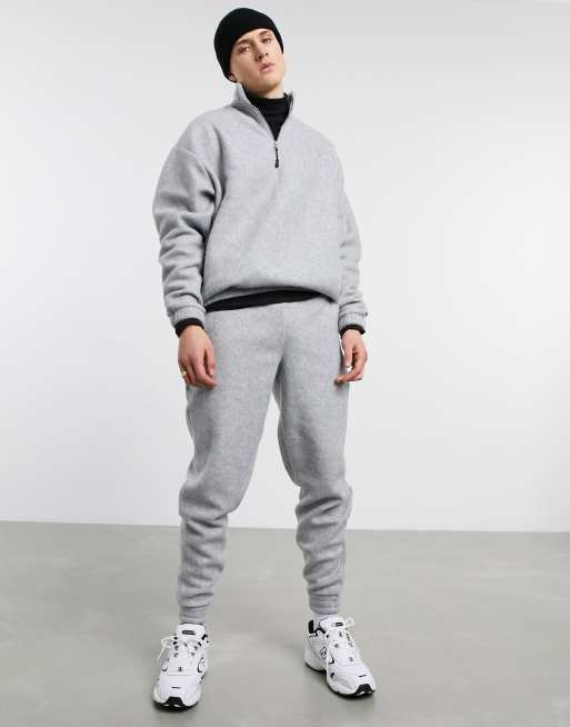 Asos sweatsuit clearance, ASOS DESIGN polar fleece oversized tracksuit with half zip sweatshirt in heather gray clearance