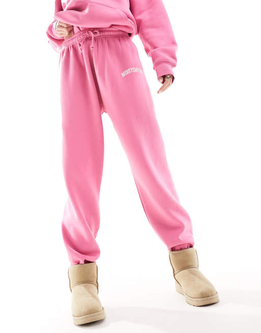 Missy Empire logo cuffed trackies in pink part of a set ASOS