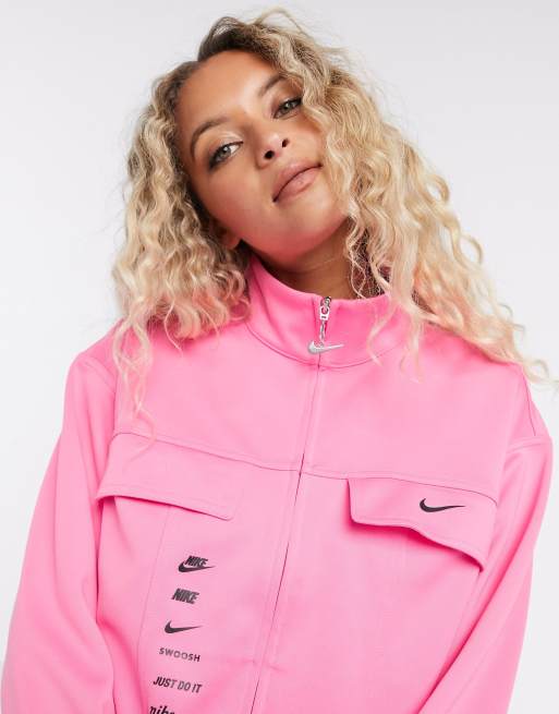 Nike swoosh pink clearance tracksuit, Nike Womens Large 12 14 Pink Logo Swoosh Tracksuit Jacket clearance