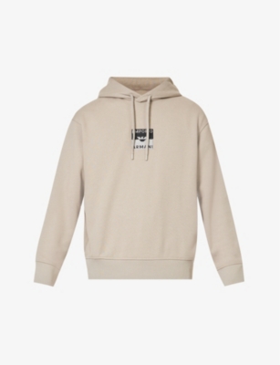 EMPORIO ARMANI Logo print cotton jersey hoody Selfridges