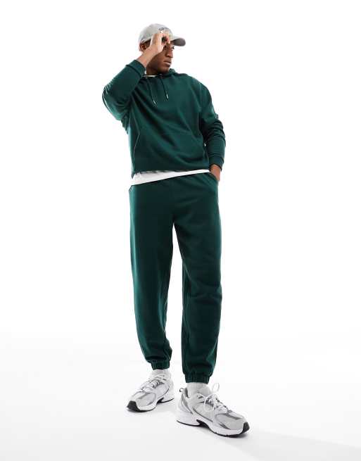 ASOS DESIGN tracksuit with oversized hoodie and jogger in dark green