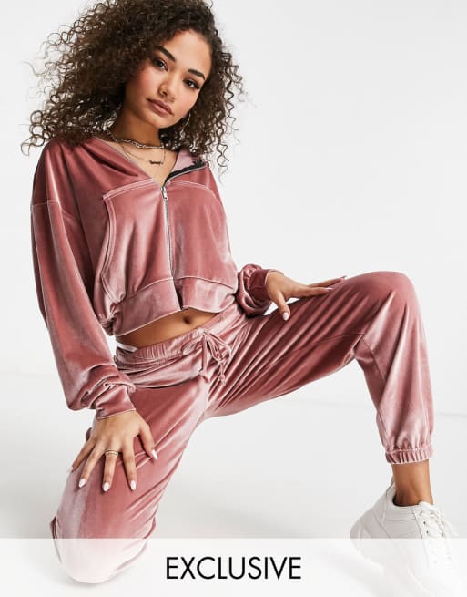 Fashionkilla exclusive velour crop top joggers co ord in dusty pink