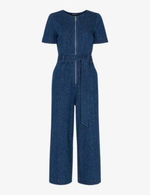 WHISTLES Short sleeve zip up denim jumpsuit Selfridges