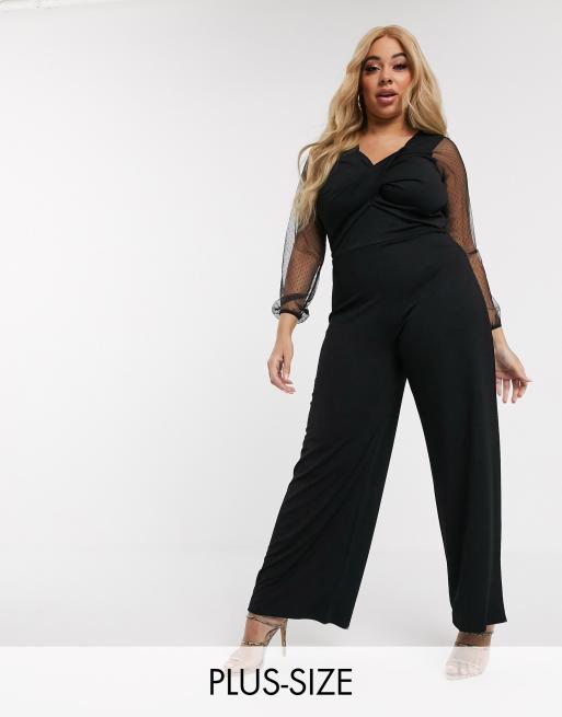 Pink Clove wide leg jumpsuit with twist front bodice and sheer
