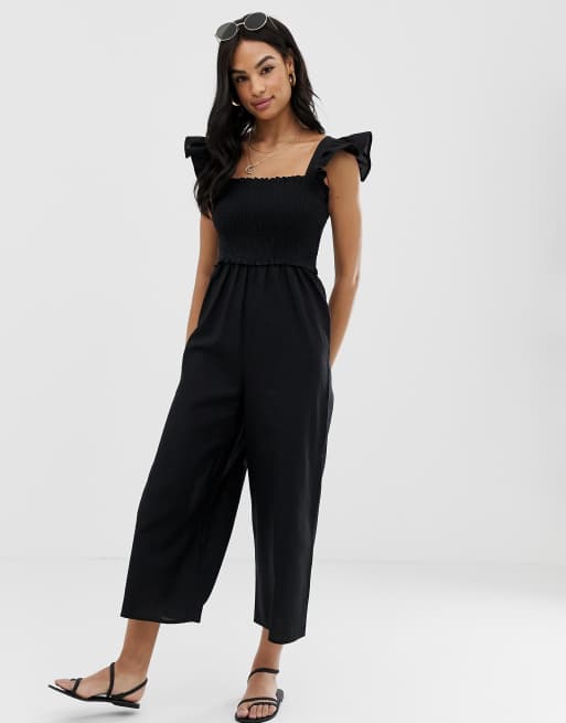ASOS DESIGN shirred frill sleeve jumpsuit