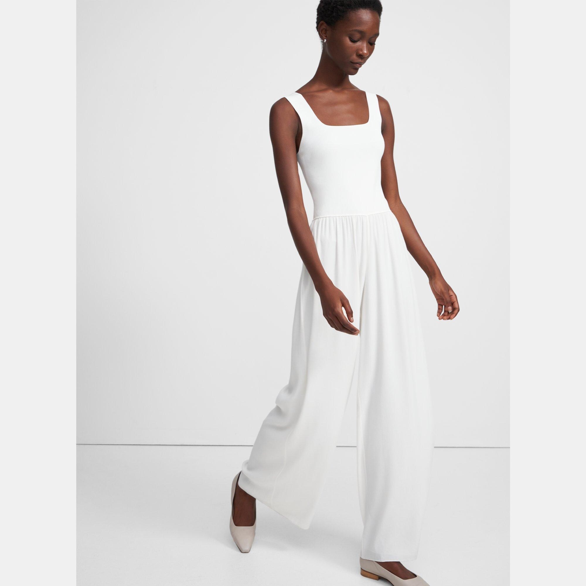 Theory clearance white jumpsuit, Viscose Crepe Ribbed Square Neck Jumpsuit Theory clearance