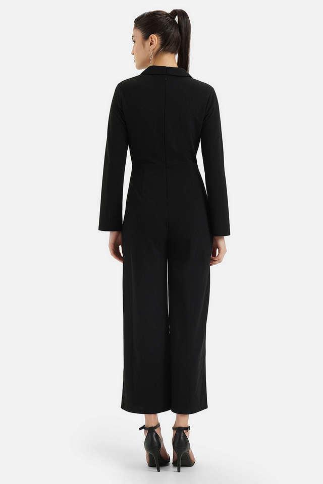 Buy Front Overlap Detail Jumpsuit With Belt At Waist 120704BLACKXS