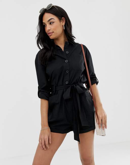 ASOS DESIGN boiler playsuit with button front and tie waist ASOS