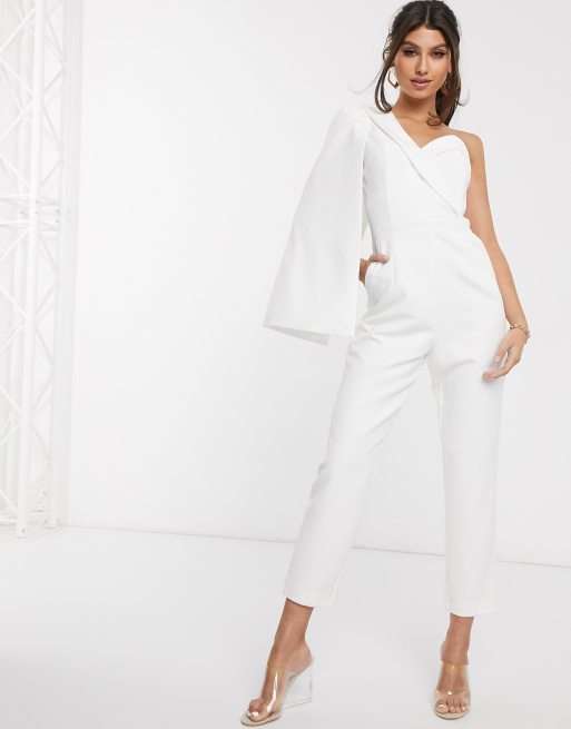 Lavish Alice one shoulder cape jumpsuit in white