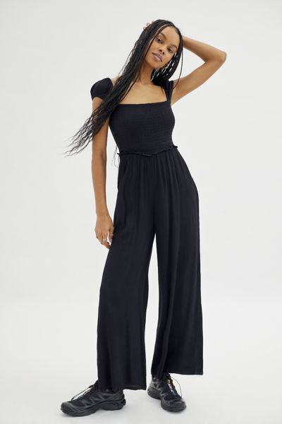 Urban outfitters jumpsuit clearance black, Urban Outfitters Uo Nova Smocked Wide leg Jumpsuit In Black ModeSens clearance