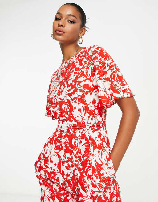 Girl In Mind culotte jumpsuit in red floral ASOS