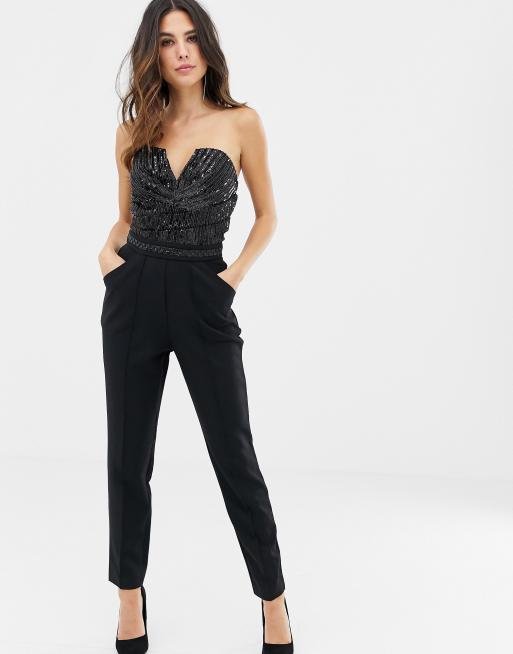 Lipsy bandeau jumpsuit with clearance sequin detail in black