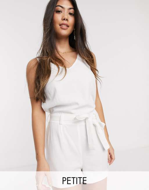 Vero Moda Petite linen playsuit with tie waist in white ASOS