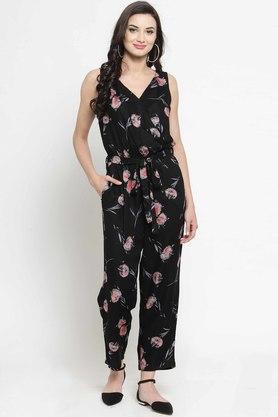 Buy SERA Black Women s Regular Fit Printed V Neck A Line Jumpsuit