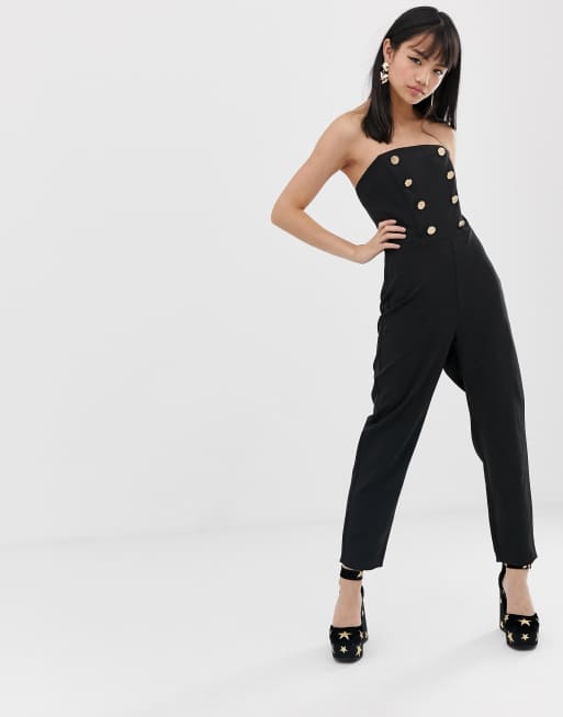 Miss Selfridge petite black button bandeau jumpsuit ASOS