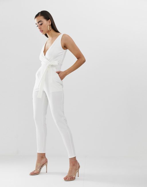 Outrageous Fortune tie waist jumpsuit in white