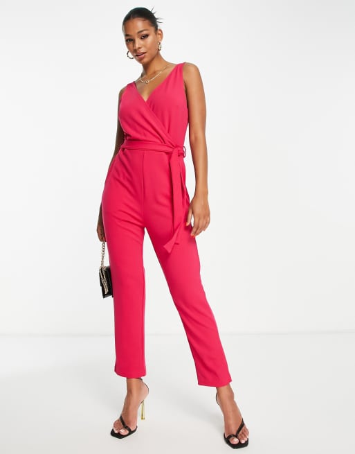 Girl In Mind wrap front jumpsuit with straight leg in fuchsia