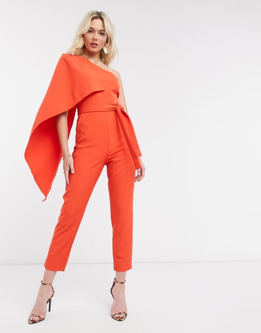 One Shoulder Cape Jumpsuit in Hot Coral ShopperBoard