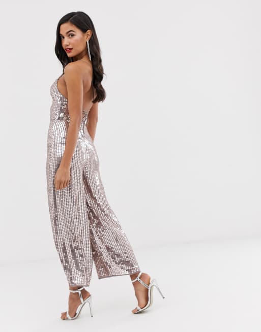 ASOS DESIGN sequin strappy cross back culotte jumpsuit