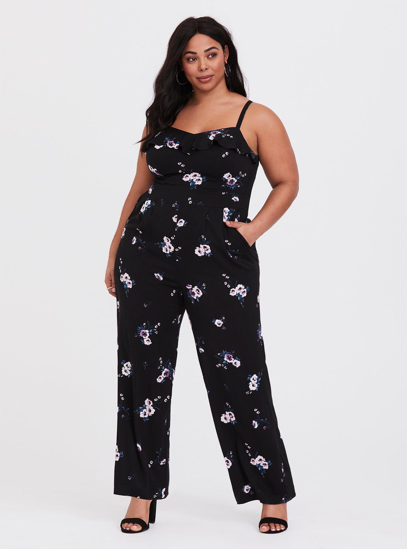Plus Size Black Floral Wide Leg Jumpsuit Torrid