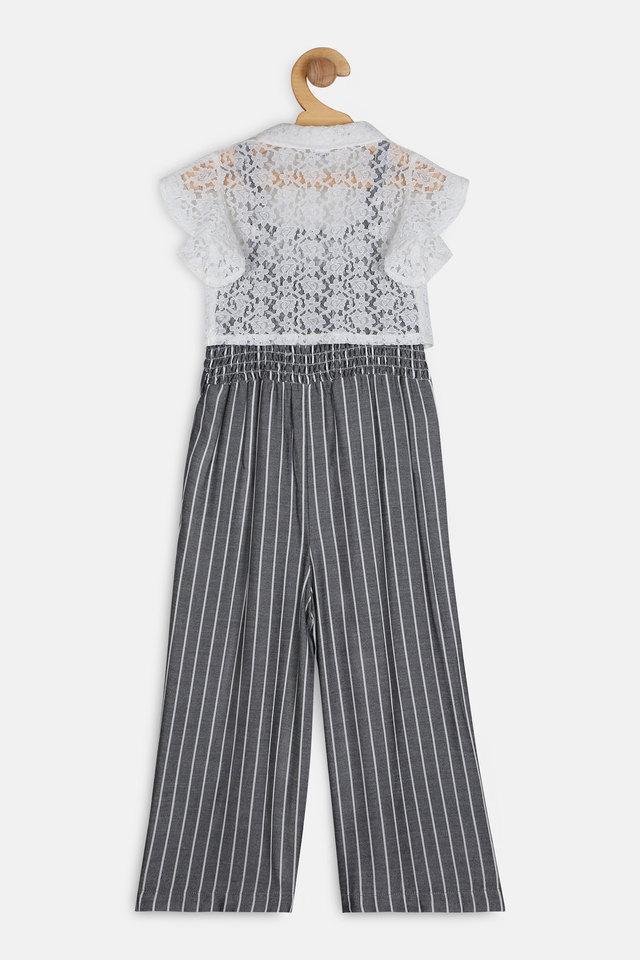 Buy PEPPERMINT Grey Girls Grey Stripe Casual Jumpsuit With Shrug