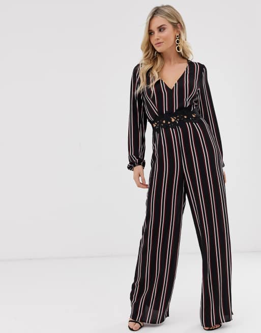 Striped jumpsuit long clearance sleeve, Black Button Striped Long Sleeve Through Jumpsuit clearance