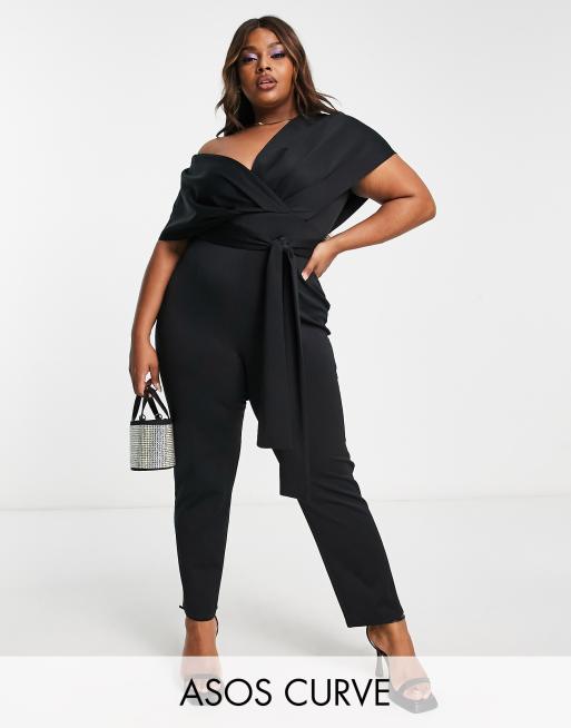 ASOS DESIGN Curve fallen shoulder scuba jumpsuit in black