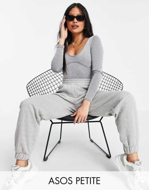 ASOS DESIGN petite 2 in 1 rib and jogger jumpsuit in grey ASOS