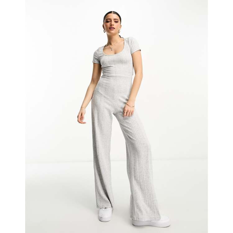 ASOS DESIGN scoop neck rib jumpsuit with cut out back in grey
