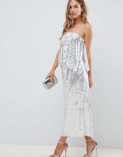 ASOS DESIGN bandeau embellished jumpsuit with tiered leg