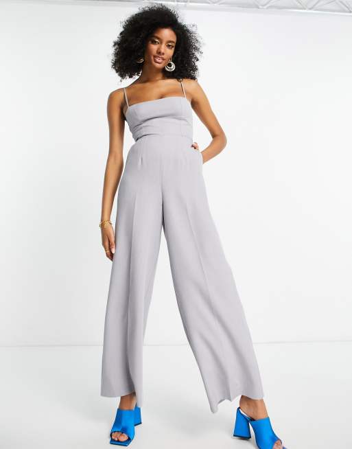 ASOS DESIGN tailored melange suiting strappy back wide leg jumpsuit in grey