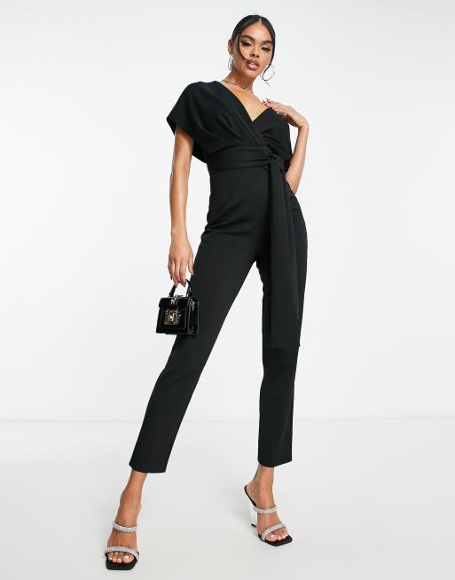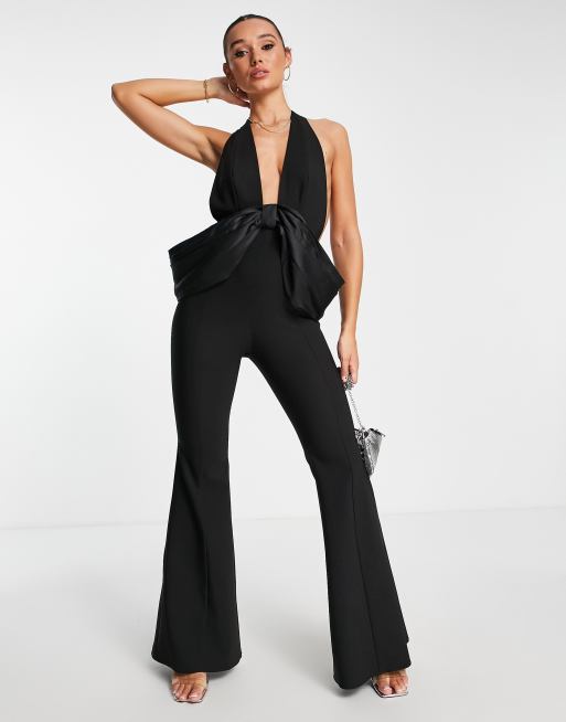 ASOS LUXE halterneck backless bow detail jumpsuit in black