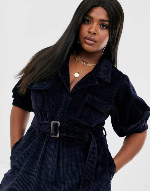 ASOS DESIGN Curve cord belted jumpsuit with tapered leg
