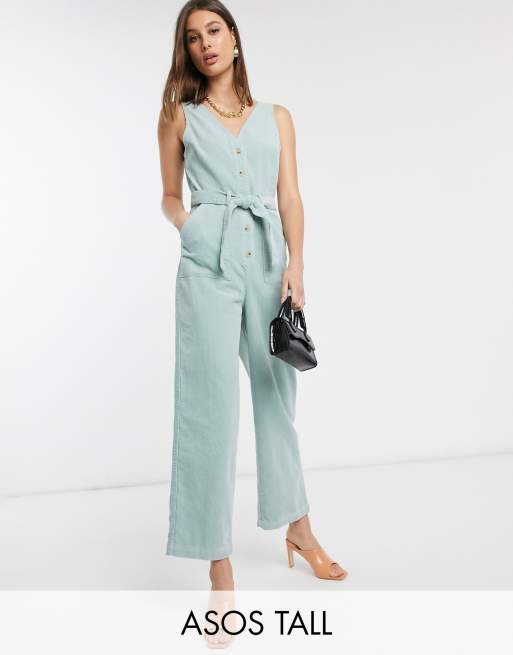 ASOS DESIGN cord button through belted jumpsuit in red brick ASOS
